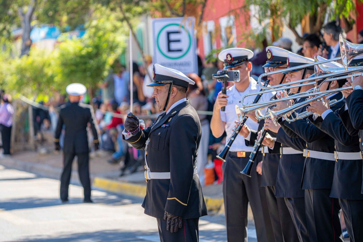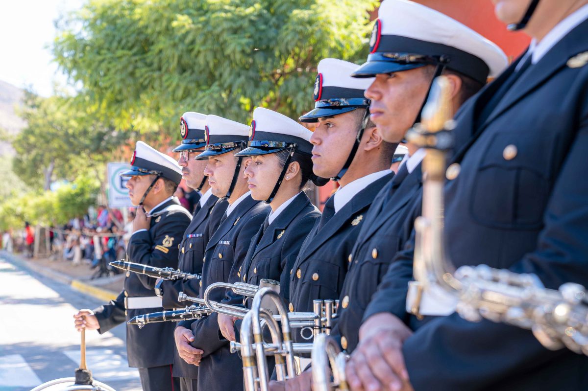 La Banda de Músicos de la Academia, compuesta por 31 infantes de marina y dirigida por el Suboficial Juan Orellana Cáceres, tuvo un rol central en el desfile cívico, acompañando el paso de delegaciones y rindiendo honores frente a las autoridades, encabezadas por el alcalde Waldo Contreras Cortés.