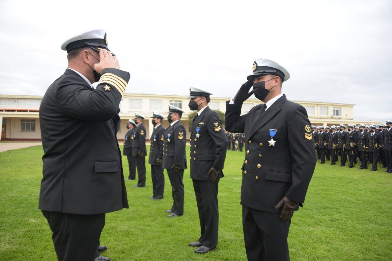Viña del Mar. Con motivo de conmemorarse el centésimo cuadragésimo tercer aniversario del Combate Naval de Iquique y Punta Gruesa, la mañana de este 20 de mayo, la dotación de la Academia Politécnica Naval formó en el patio principal donde se realizó una ceremonia militar interna, con imposición de condecoraciones por años de servicio a Oficiales y Gente de Mar.