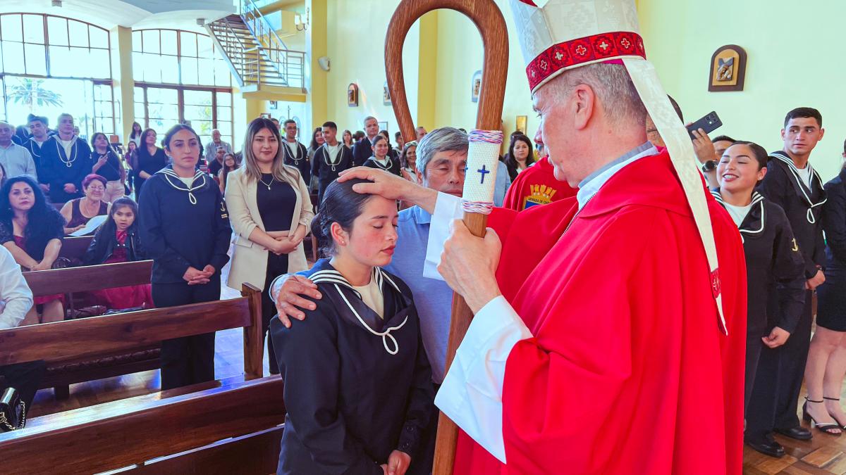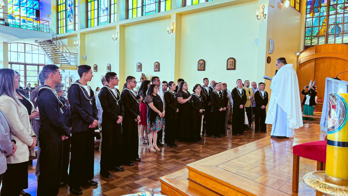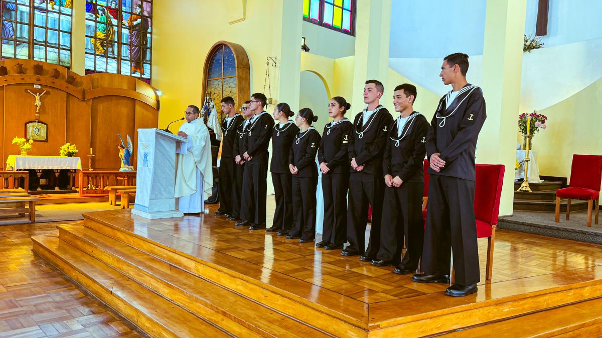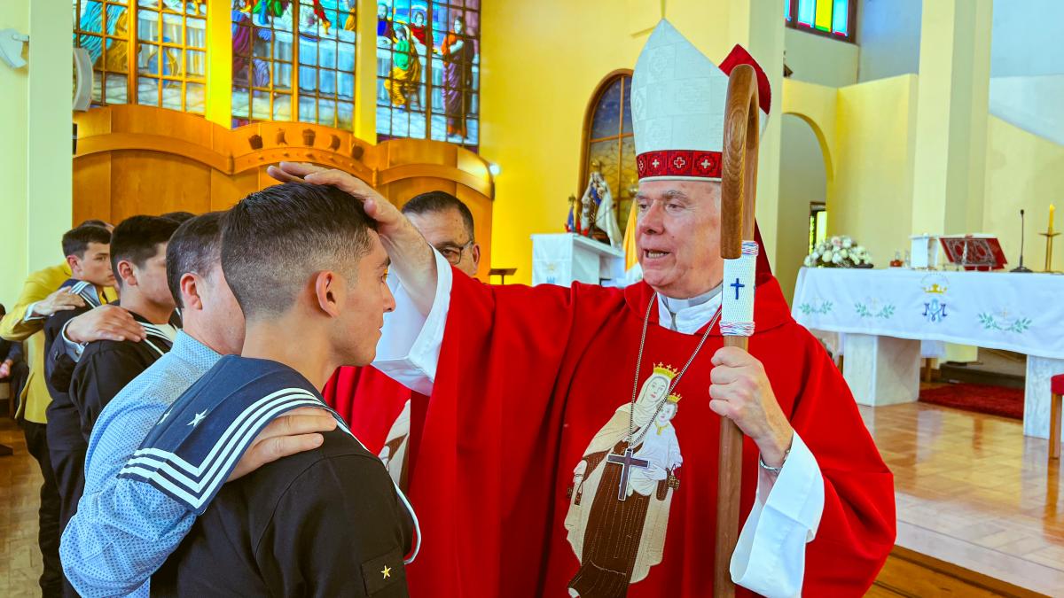 Viña del Mar. El viernes 28 de noviembre, por la tarde, en la Iglesia Naval “Nuestra Señora del Carmen” del sector Las Salinas, el Obispo Castrense de Chile, General de Brigada Monseñor Pedro Ossandón Buljevic, junto al Jefe del Servicio Religioso de la Armada, Capitán de Navío RL. José Jarpa y el Capellán de la Primera Zona Naval y de la Academia Politécnica Naval, Capitán de Fragata RL Juan Carlos Molina, oficiaron la Santa Misa para impartir el Sacramento de la Confirmación a los Alumnos Grumetes y Marineros que cumplieron con el proceso de Enseñanza en Cristo durante el tiempo establecido.