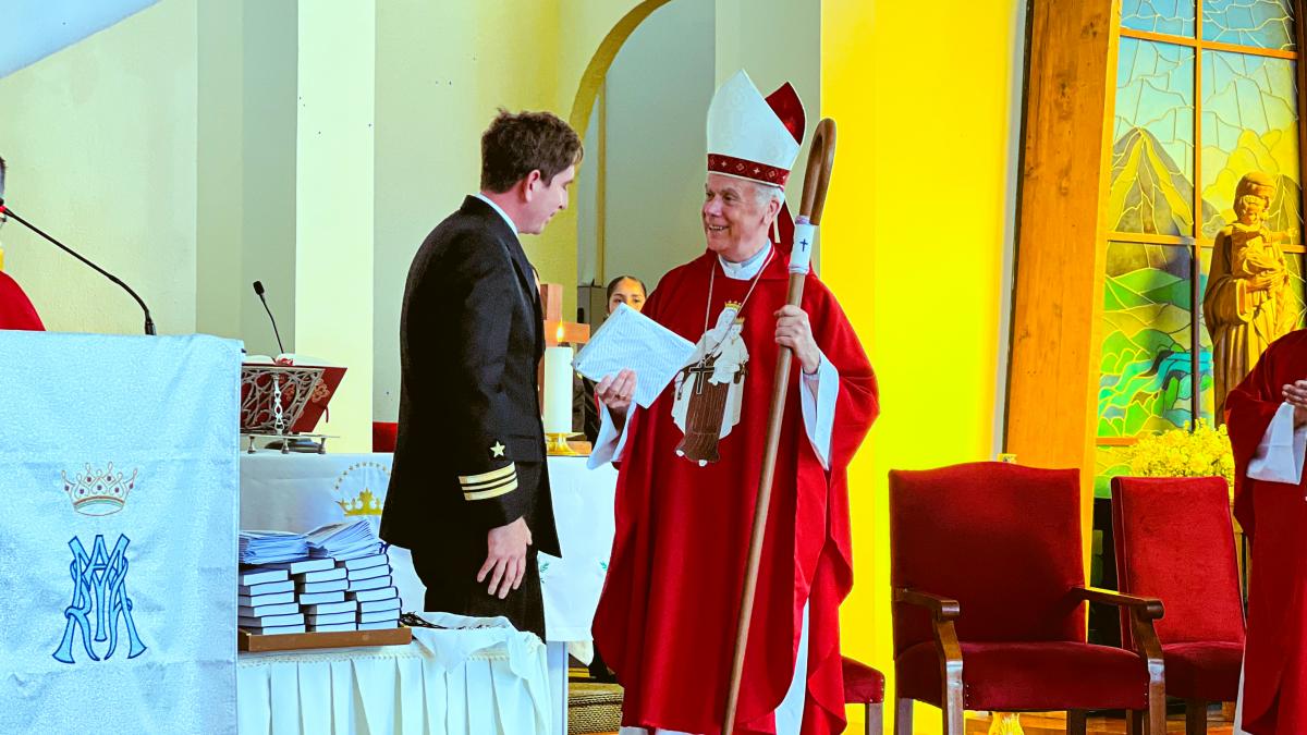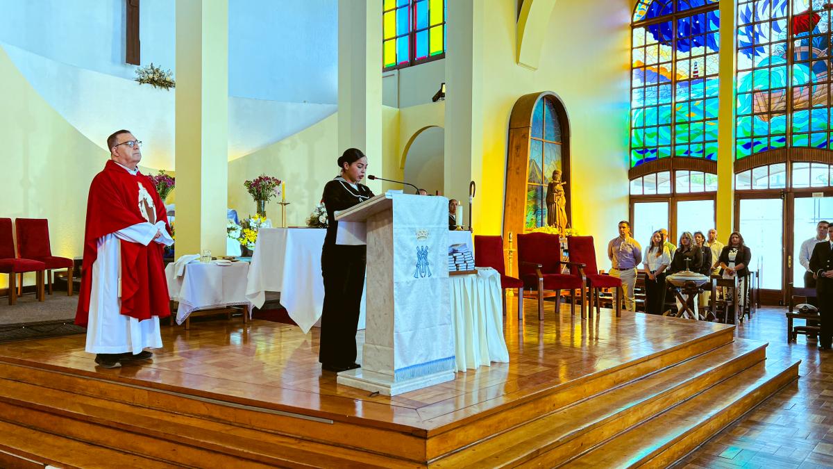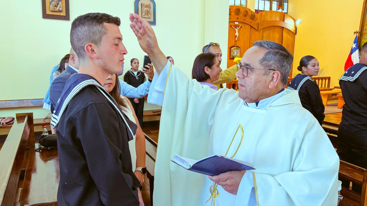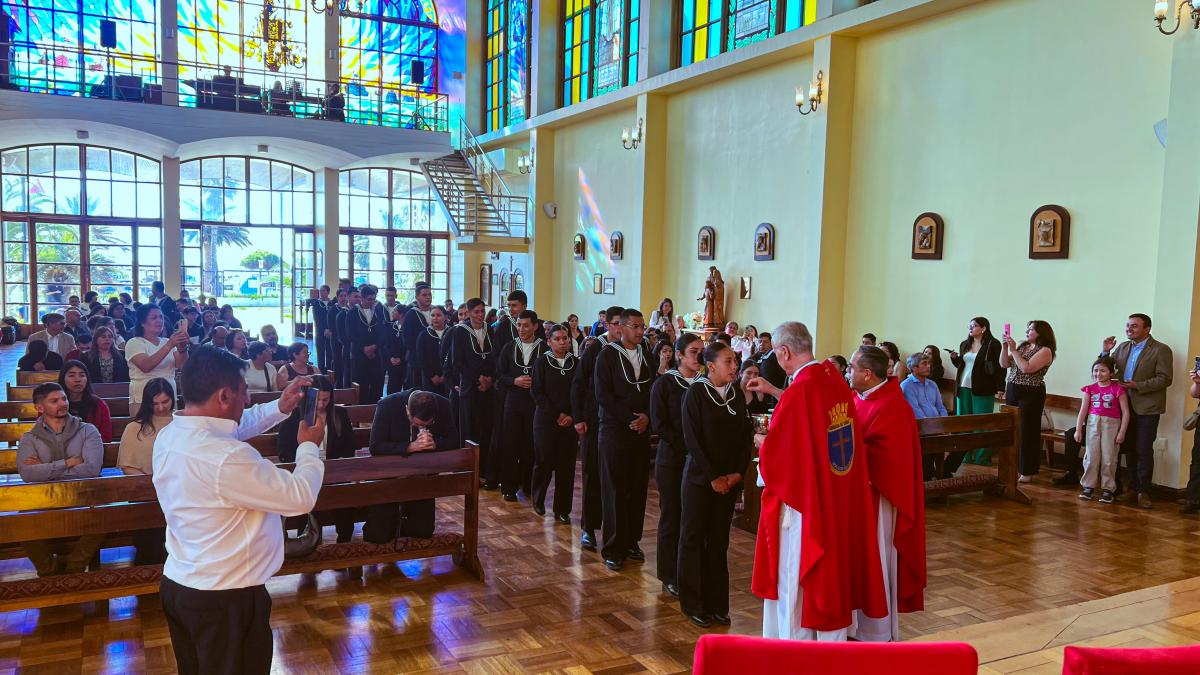 Viña del Mar. El viernes 28 de noviembre, por la tarde, en la Iglesia Naval “Nuestra Señora del Carmen” del sector Las Salinas, el Obispo Castrense de Chile, General de Brigada Monseñor Pedro Ossandón Buljevic, junto al Jefe del Servicio Religioso de la Armada, Capitán de Navío RL. José Jarpa y el Capellán de la Primera Zona Naval y de la Academia Politécnica Naval, Capitán de Fragata RL Juan Carlos Molina, oficiaron la Santa Misa para impartir el Sacramento de la Confirmación a los Alumnos Grumetes y Marineros que cumplieron con el proceso de Enseñanza en Cristo durante el tiempo establecido.