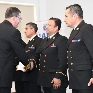La ceremonia fue presidida por el Director de la Academia, Capitán de Navío Fabián González, acompañado del Jefe del Departamento de Extensión, Capitán de Fragata René Briones, del Jefe de la División Postgrado, Capitán de Fragata (R.) Matías Silva, Suboficiales Mayores y Docentes.