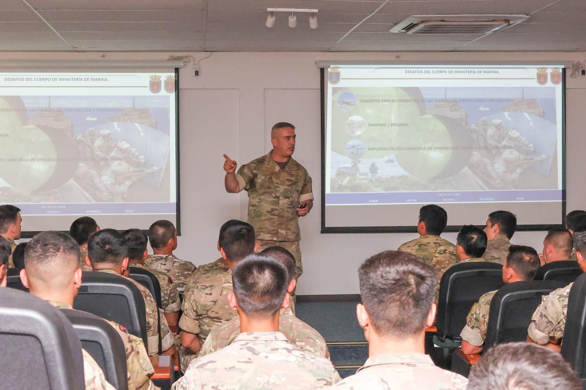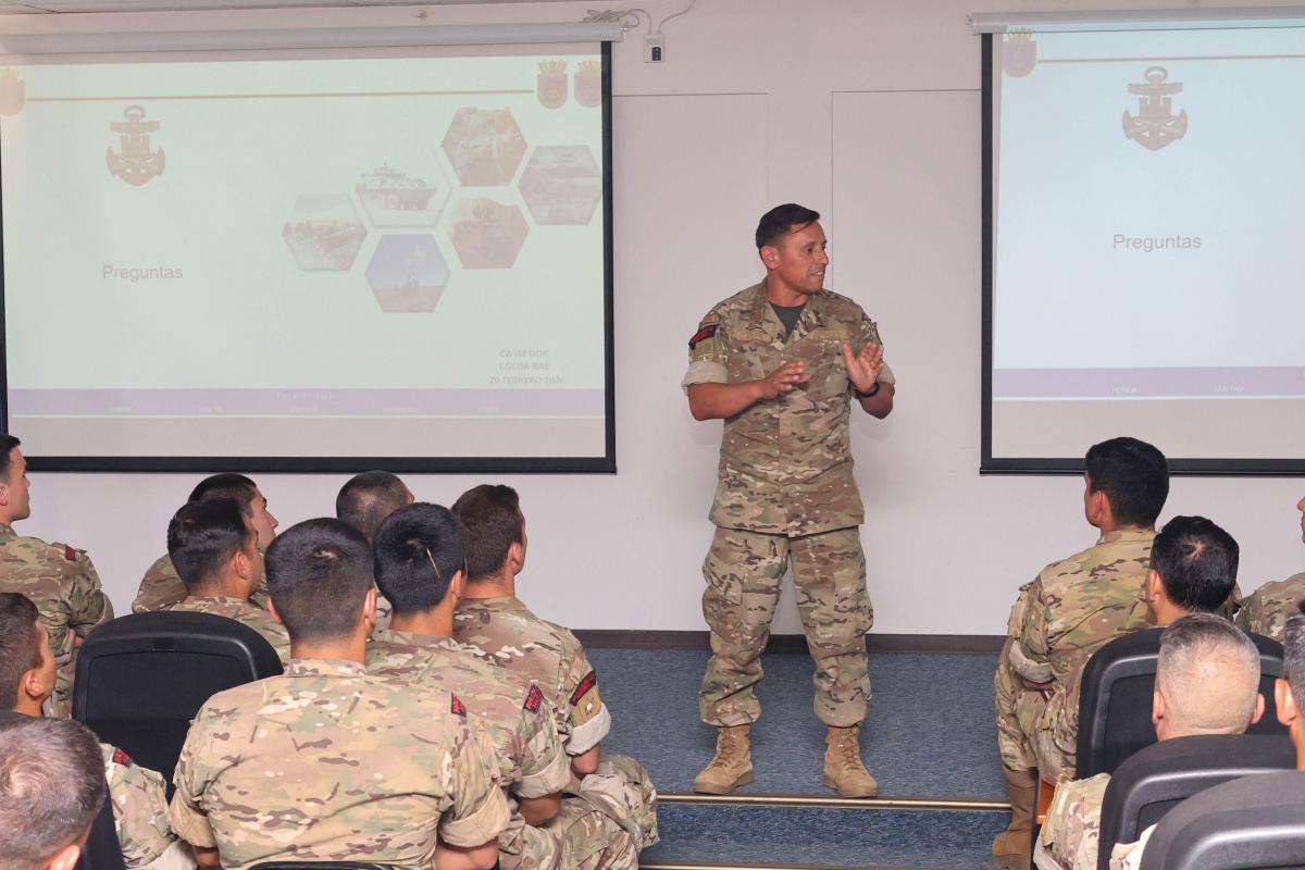 En esta oportunidad el Comandante General del Cuerpo IM destacó la importancia de la educación y preparación integral de los Infantes de Marina, desde los inicios de la carrera como soldados del mar y durante el transcurso de la misma. Desde esta perspectiva doctrinaria, enfatizó en la preparación de cada integrante de la organización como un combatiente de infantería ligera, con una mentalidad maniobrista y una filosofía de conducción de operaciones basada en el mando tipo misión, donde el juicio táctico, la confianza mutua y la competencia profesional son principios rectores que todo guerrero anfibio debe cultivar. El escenario estratégico actual exige combatientes capaces de enfrentar desafíos complejos y amenazas asimétricas e híbridas, donde la rapidez de respuesta, la adaptación flexible al entorno y la máxima capacidad de combate, resultan determinantes.