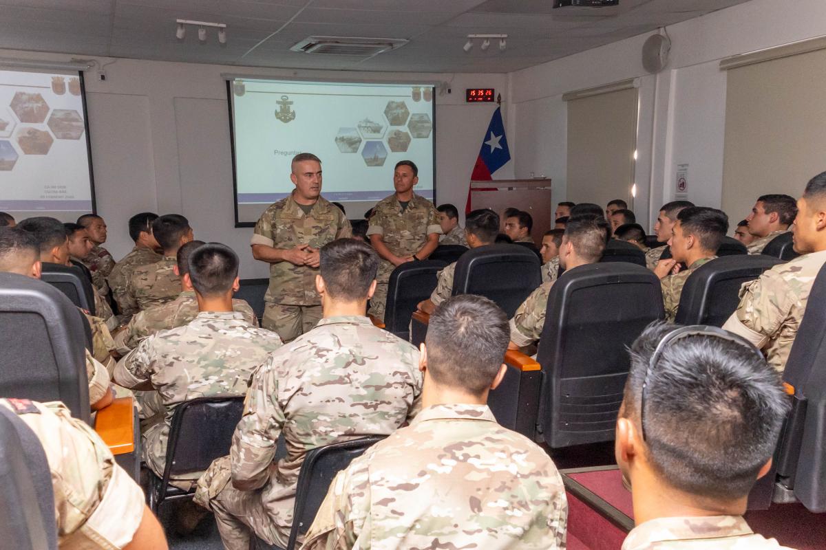 El día viernes 20 de febrero, el Comandante General del Cuerpo de Infantería de Marina y Comandante de la Brigada Anfibia Expedicionaria, CA IM Daniel OPAZO Riquelme, acompañado del Condestable Mayor de la Brigada Anfibia Expedicionaria SOM IM Jaime CABRE Pizarro, sostuvo una reunión con el personal Infante de Marina perteneciente a la Academia Politécnica Naval en el marco del permanente fortalecimiento doctrinario y profesional del Cuerpo de Infantería de Marina.