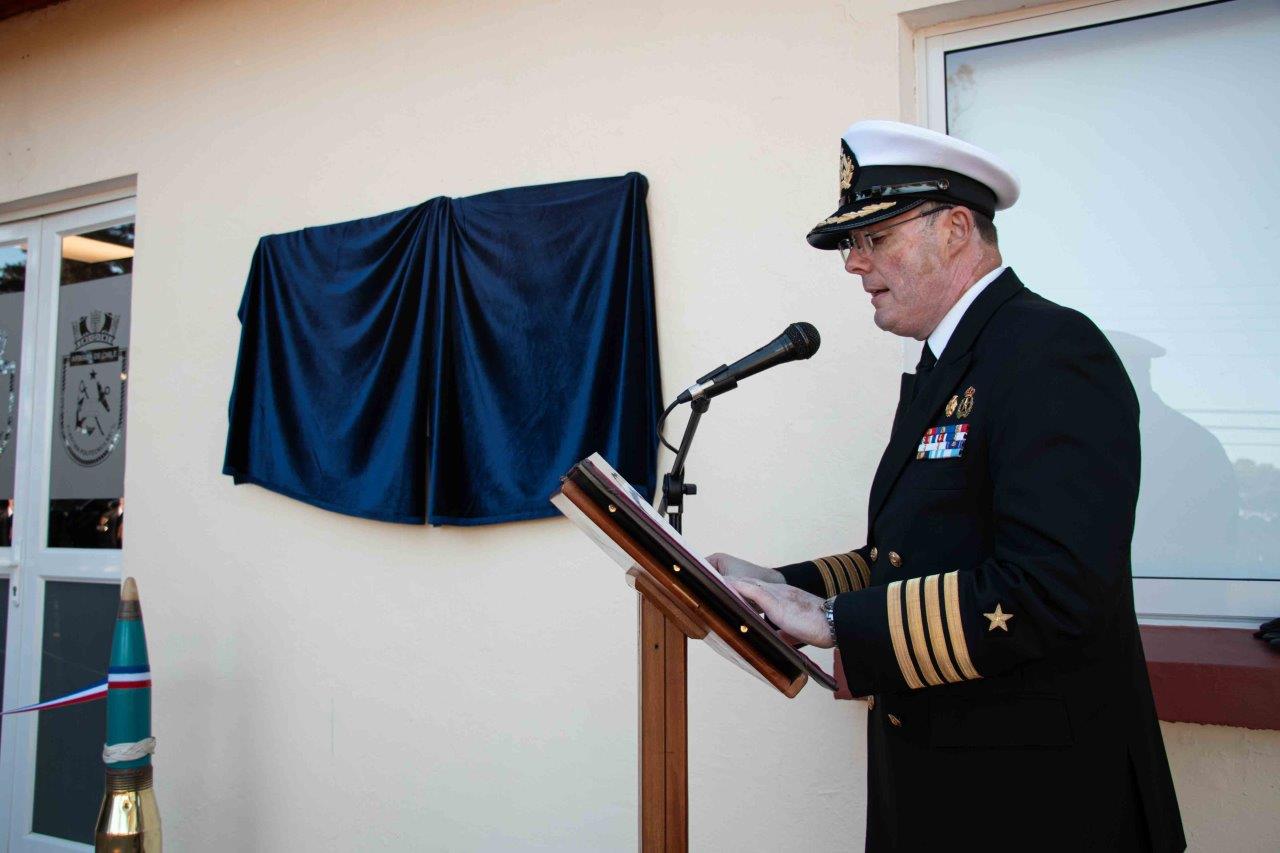 Posteriormente el Vicealmirante Zamorano, junto al Contraalmirante Gutiérrez y al Contraalmirante (r) Arriagada, cortó la cinta de las obras de remodelación de la sala de conferencias, tras lo cual el Contraalmirante Gutiérrez y el Comandante González descubrieron la placa con el nombre del Subteniente Arriagada.